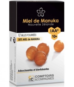 Comptoirs Et Compagnies - Billes Fourrées 30% Miel de Manuka IAA10 Plus 54gr est un complément alimentaire qui va vous apporter apaisement, résistance et confort.