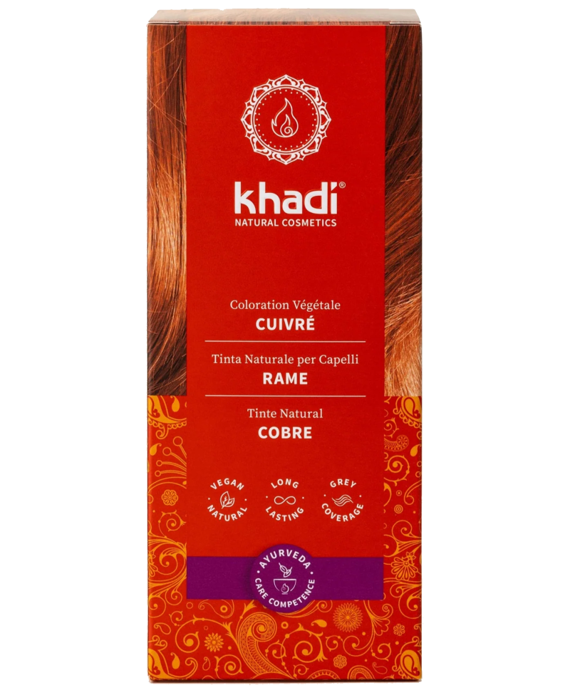 La Coloration végétale Cuivré 100g Khadi offre une teinte cuivrée chaleureuse, lumineuse et naturelle, idéale pour sublimer la chevelure tout en respectant son équilibre. Composée exclusivement de poudres de plantes, elle colore en douceur et renforce le cheveu.