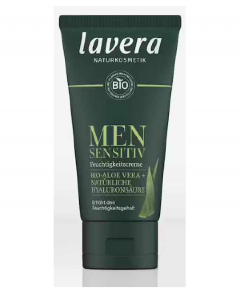 La crème hydratante Men Sensitiv, 50 ml, de Lavera hydrate la peau pour un aspect frais et soigné.